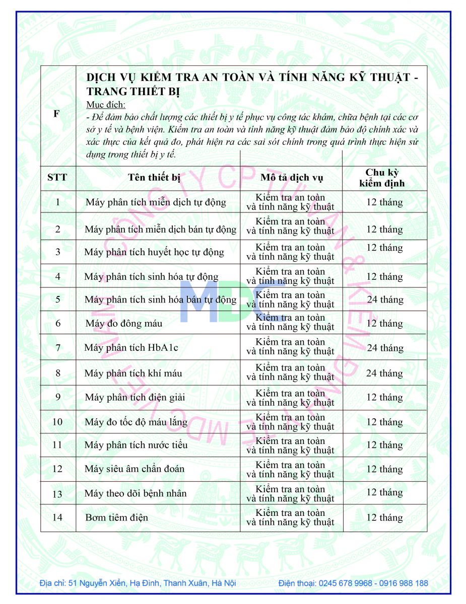 Dịch vụ kiểm tra an toàn và tính năng kỹ thuật trang thiết bị Danh mục kiểm định Dịch Vụ Đăng Ký Giấy Phép Hoạt Động Các Sản Phẩm Dịch Vụ Giám Định Dịch Vụ Kiểm Định Danh Mục Kiểm Định Danh Mục Giám Định Danh mục đăng ký giấy phép Các thông tin liên quan Quy trình kiểm định máy thở & kiểm định máy gây mê kèm thở 25/04/2024 DỊch vụ kiểm định - Phương tiện đo nhóm 2 22/04/2024 Quy trình thực hiện kiểm định an toàn dao mổ điện 03/05/2024 DỊch vụ kiểm định an toàn các loại máy, thiết bị, vật tư có yêu cầu nghiêm ngặt về an toàn lao động 22/04/2024 Dịch vụ kiểm định, kiểm xạ các trang thiết bị bức xạ và phóng xạ 22/04/2024 DỊch vụ kiểm định an toàn và tính năng kỹ thuật trang thiết bị y tế 22/04/2024 DỊch vụ hiệu chuẩn - Phương tiện đo 22/04/2024