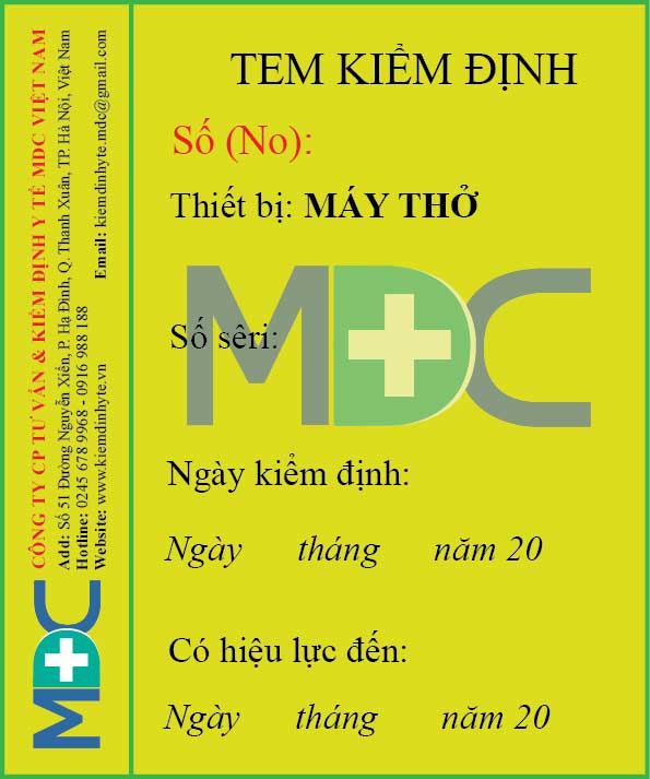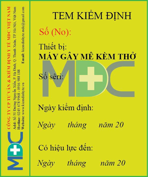 + Dán tem kiểm định tại vị trí mặt Máy gây mê kèm thở: Tem phải có tối thiểu các thông tin sau: