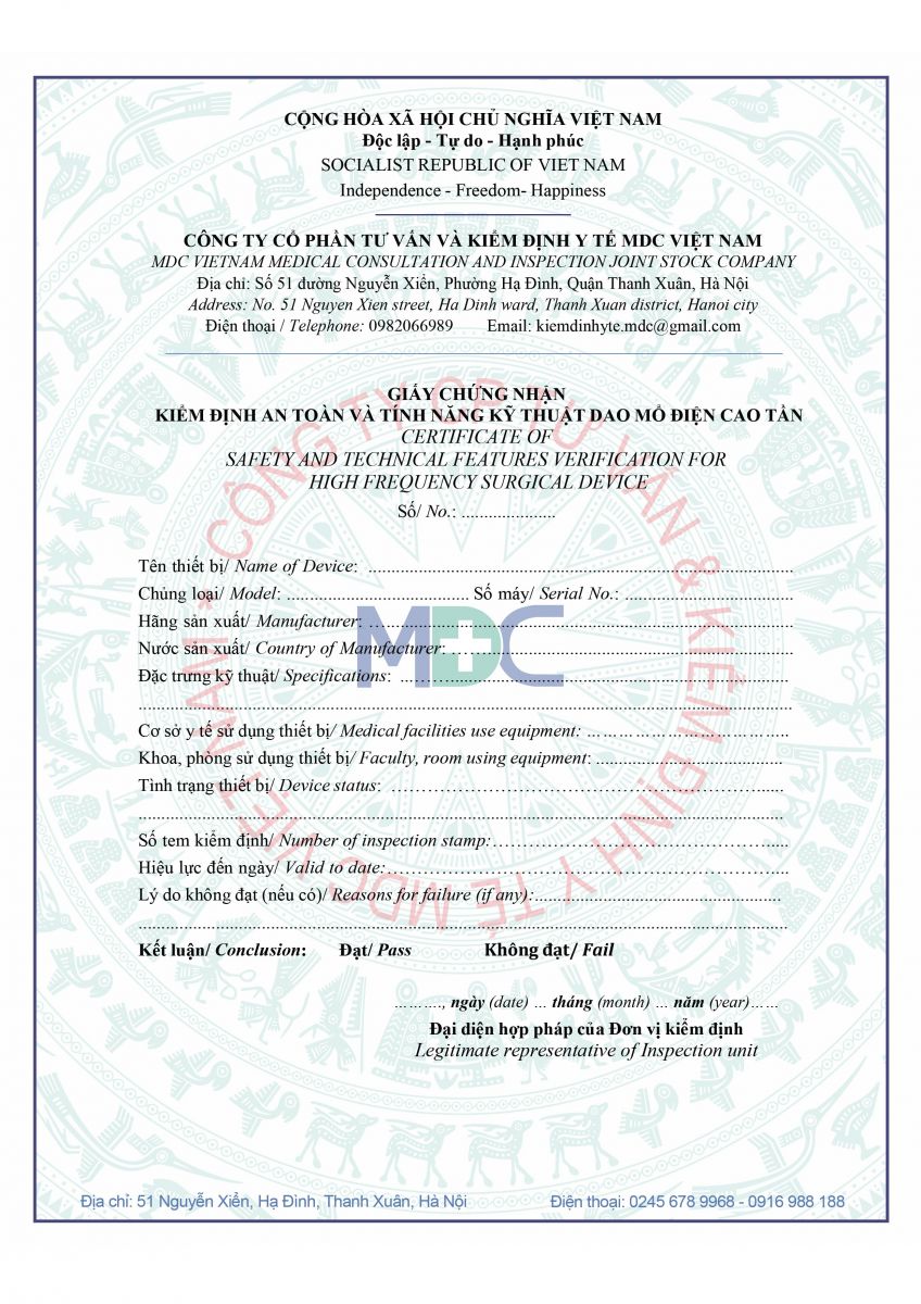 3. Cấp chứng chỉ kiểm định dao mổ điện: